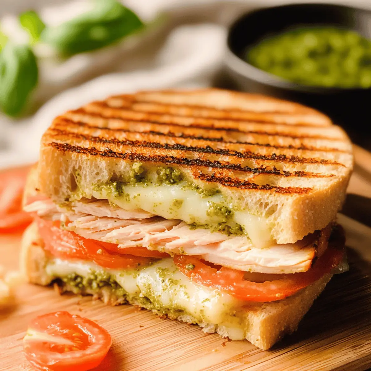 Experiment with Cheese: For a richer flavor, consider blending cheeses. Combining fontina with mozzarella or gouda can elevate your Turkey Basil Pesto Panini.