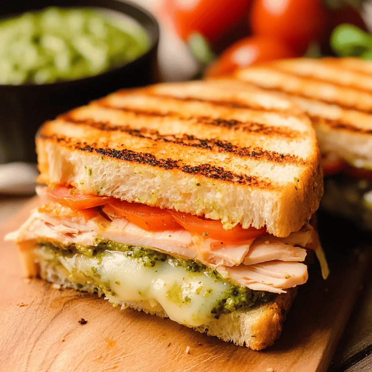 I often recommend letting your Turkey Basil Pesto Panini rest for about 2 minutes after grilling. This allows the cheese to settle and makes it easier to slice without the fillings spilling out. However, it’s best served warm for the ultimate melty experience, so don’t let it cool for too long! Enjoy every delicious bite!