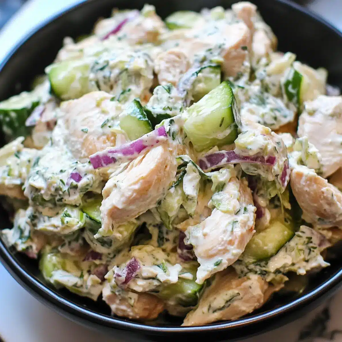 Serving Suggestion: Revive your Tzatziki Chicken Salad by adding fresh herbs or a squeeze of lemon right before serving for a burst of flavor!