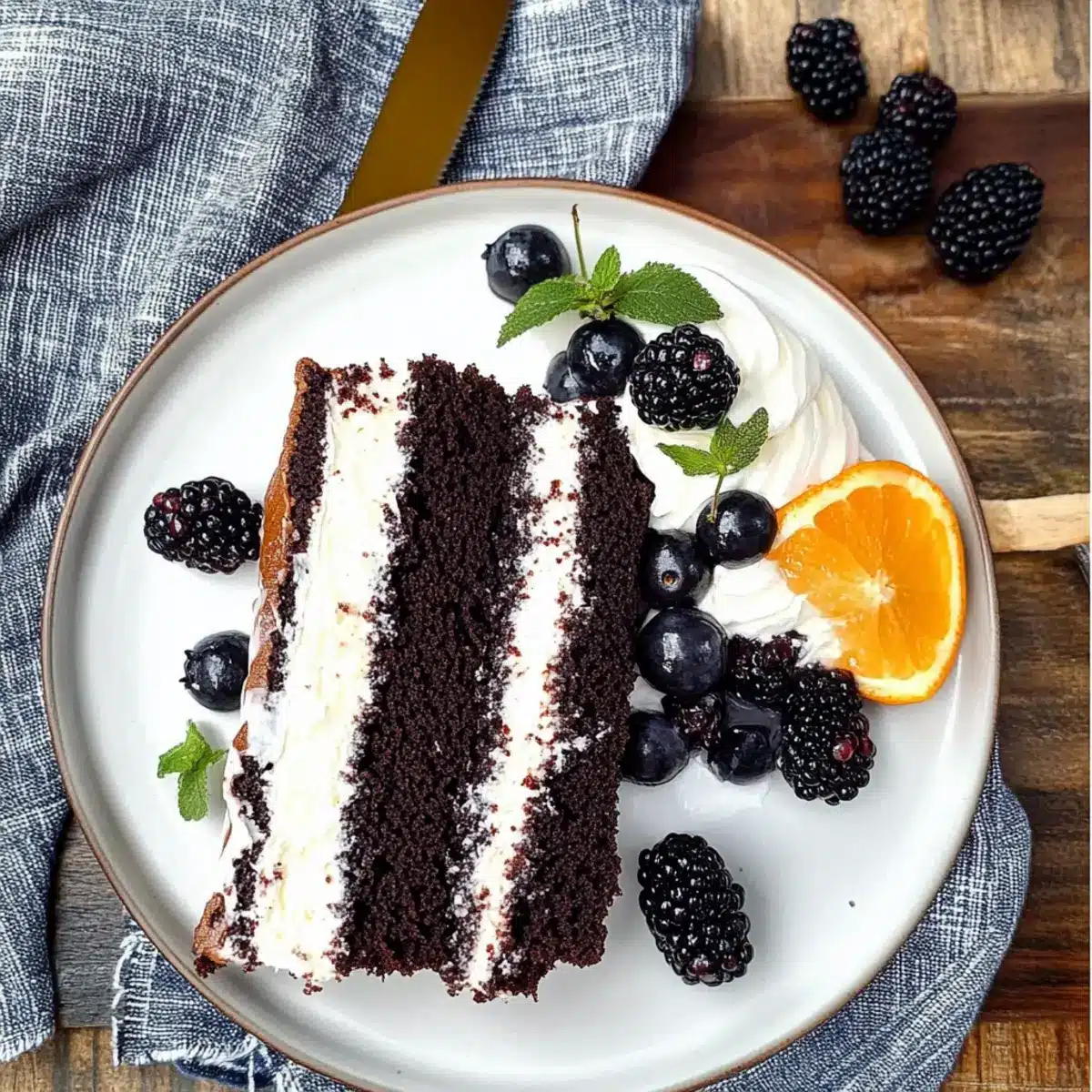 • Fresh Berries: Juicy, vibrant berries like raspberries or strawberries add a burst of freshness that balances the cake’s decadent chocolate notes.
