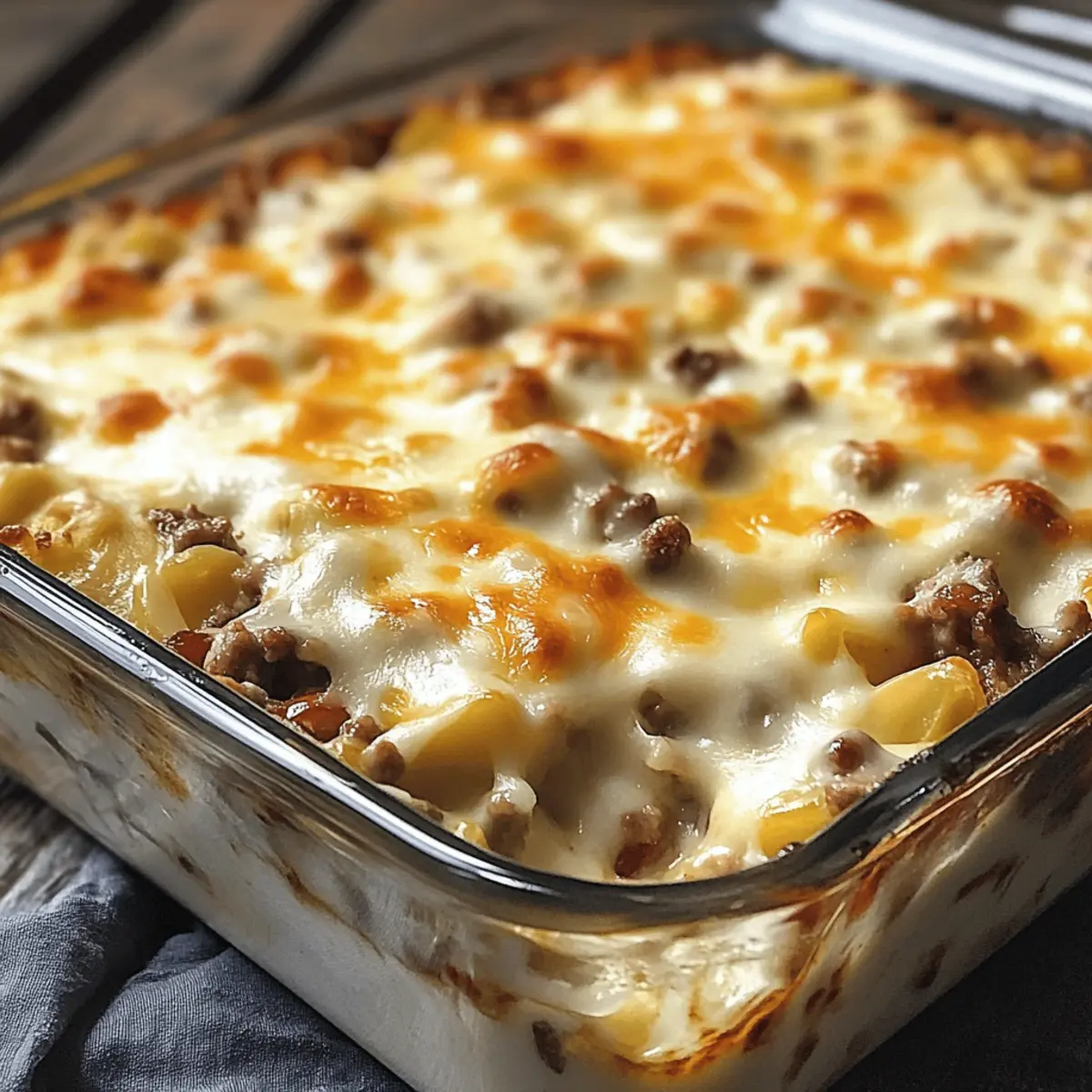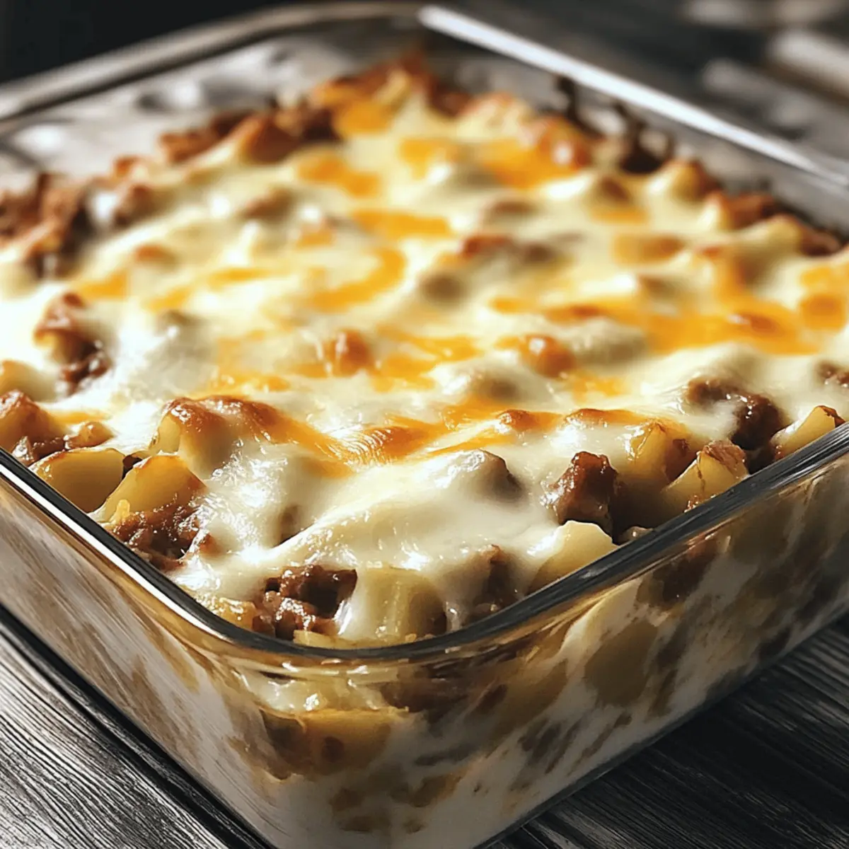 A comforting and creamy Beef Alfredo Ziti Casserole that delivers warmth and flavor in every bite.