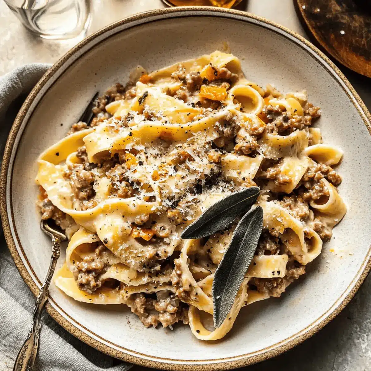 Crispy Sage: Fry the sage until crispy, but watch closely! Burnt leaves can turn bitter, ruining your White Bolognese Sauce’s flavor.