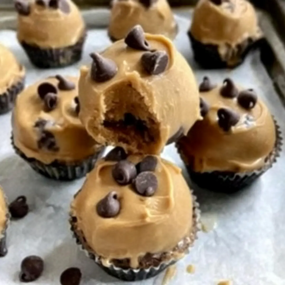 With the back of a spoon, gently smooth the tops of each yogurt peanut butter mound to create a neat and appealing finish. This small detail ensures your bites look as good as they taste, making them even more enticing when you serve them to family and friends.