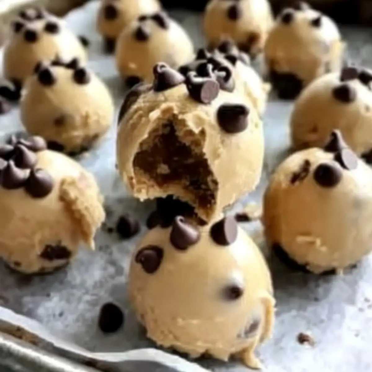 - Using a cookie scoop, drop portions of the mixture onto the baking sheet.